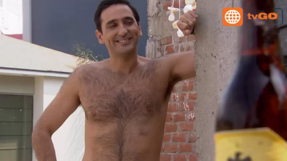 Luego de encontrarlo desnudo en la ducha, Teresita solo ve al periodista sin ropa.