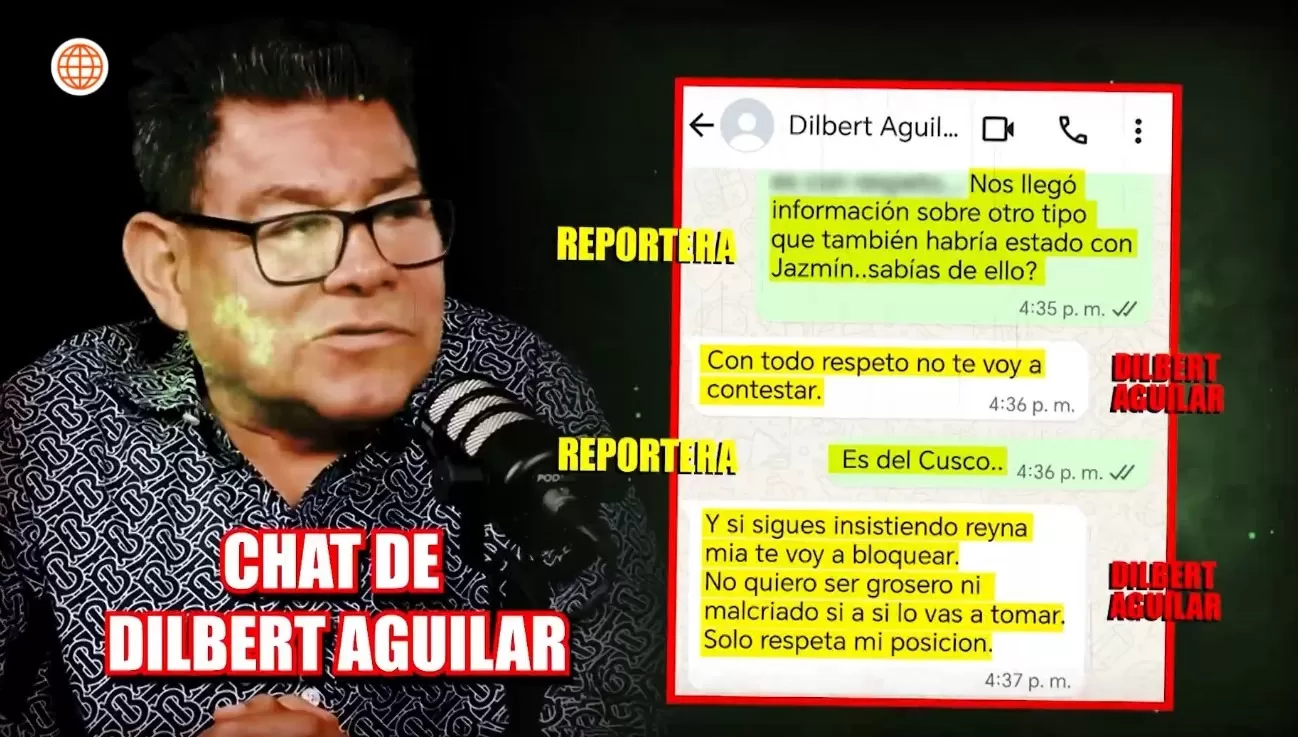 "(¿Estás tranquilo después de todo lo que ha salido en los medios sobre Jhazmín o ya lo sabías?) Viva el Apra compañera, conoces mi posición reina. (Nos llegó información sobre otro tipo que también habría estado con Jhazmín, ¿sabías de ello? Es del Cusco) Con todo respeto, no te voy a contestar y si sigues insistiendo, reina mía, te voy a bloquear. No quiero ser grosero ni malcriado si así lo vas a tomar. Solo respeta mi posición. (¿Estás tranquilo?) Estoy bien, trabajando como todos los días. Dios te bendiga", manifestó el cantante de cumbia.