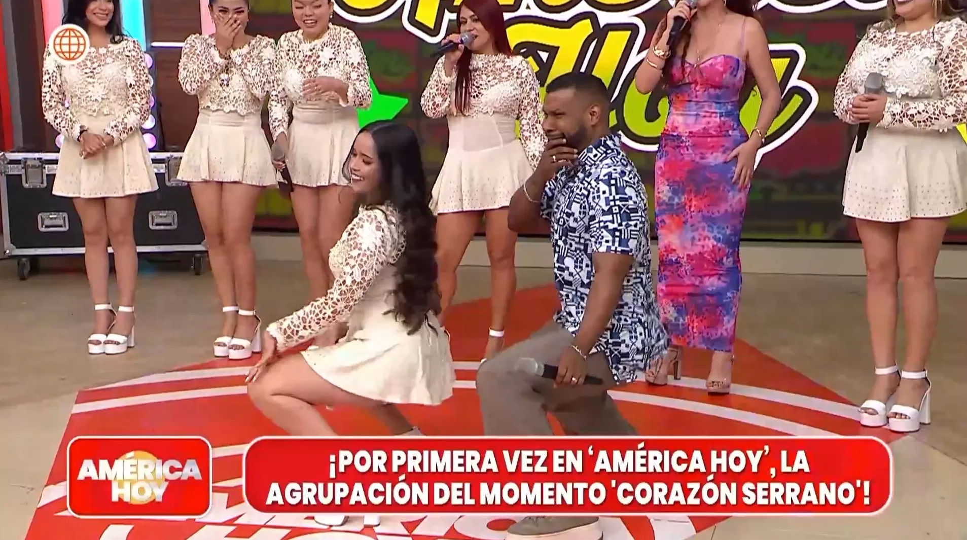 Edson Dávila se animó a enfrentarse a Kiara Lozano de Corazón Serrano durante la canción Bomba Chuchaqui en el set de América Hoy. El conductor no dudó en enfrentarse al duelo de baile al ritmo de "Como una boa" en medio del set, pero lo que nadie esperaba es que el popular "Edison" termine en el piso al no poder igualar el paso de la joven cantante.