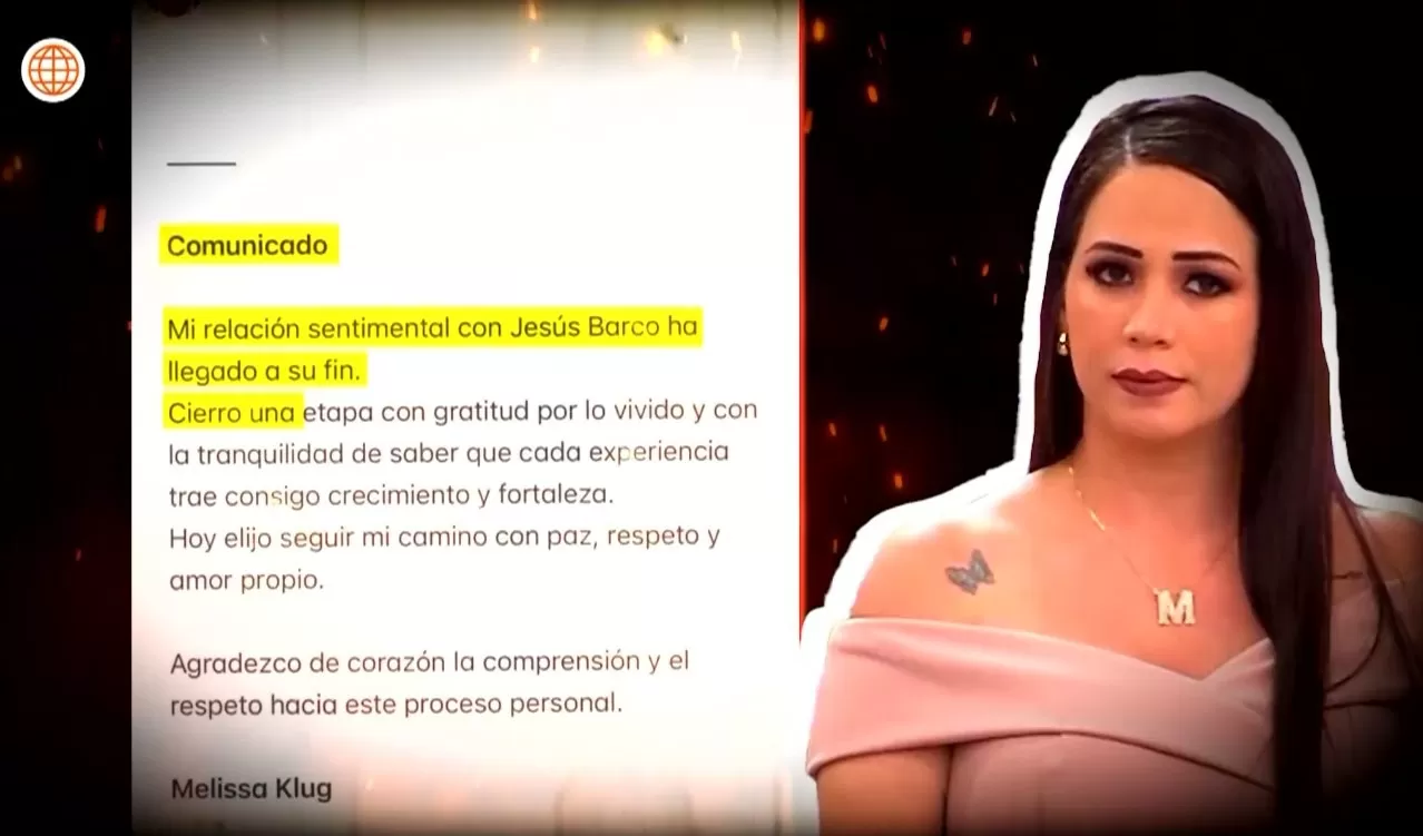 Melissa Klug publicó comunicado para anunciar el fin de su relación con Jesús Barco y luego aseguró que fue un "error".