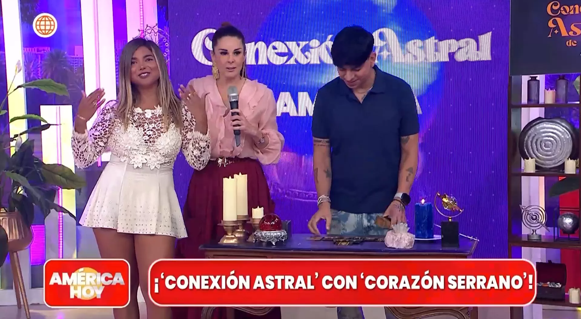 Susana Alvarado, vocalista de Corazón Serrano, nunca imaginó que Rebeca Escribens la invita a pasar al centro del set de América Hoy para que Frank Mendizábal le pueda leer las cartas en la secuencia "Conexión astral" para saber sobre su futuro amoroso. La cantante se mostró sorprendida al escuchar la predicción y es que recordemos que ella mantiene una relación con Paco Bazán.