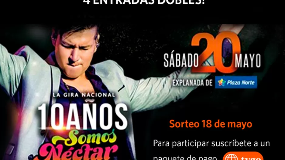 América tvgo celebra contigo los 10 años de liderazgo de Davis Orozco en el grupo Néctar, regalándote una entrada doble para su espectacular concierto.