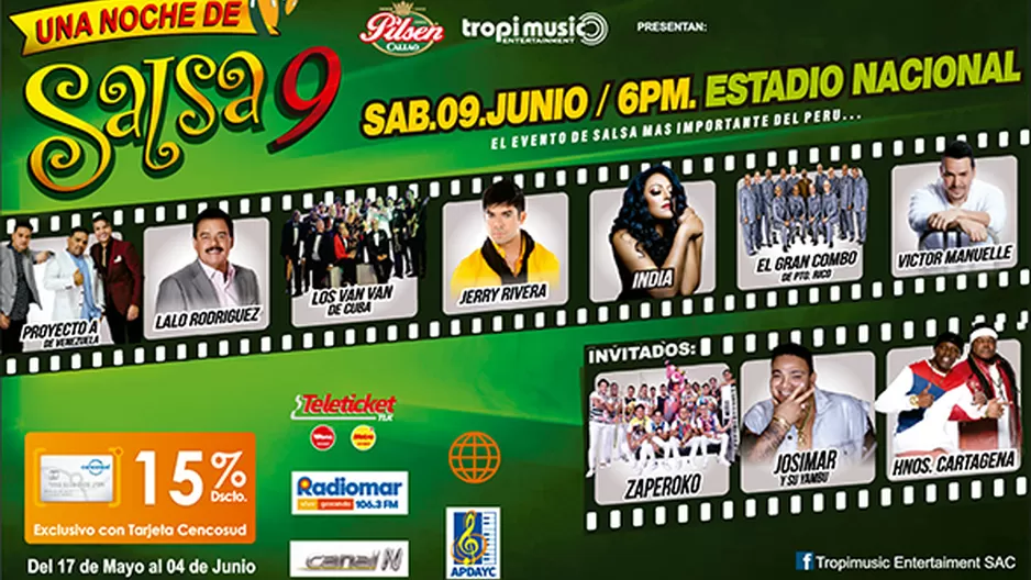 Podrás disfrutar de esta noche salsera el sábado 09 de junio a las 6:00 p.m. en el Estadio Nacional.