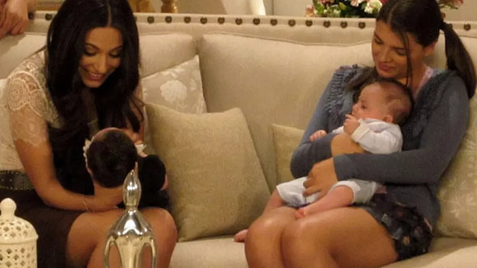 A continuación vea algunas imágenes de detrás de cámaras de Maricruz (Brenda Contreras), Solita y Santa juntas con los pequeños bebes en la sala del rancho de los Narváez.