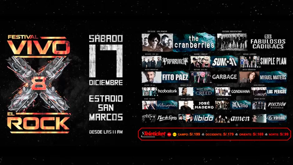 Este 17 de diciembre se realizará una nueva edición del festival Vivo X El Rock 8 desde las 11:00 a. m. en el estadio San Marcos y contará con la presencia de artistas como The Cramberries, Papa Roach, Los Fabulosos Cadillacs, entre otros artistas, cuyo show podrás disfrutar gracias a América tvGO.
