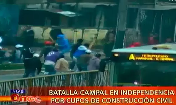 La gente desesperada se escondía en el metropolitano por temor a una bala perdida. Los protagonistas de este brutal enfrentamiento son dos bandos de construcción civil. El sindicato de Lima y Población independencia.