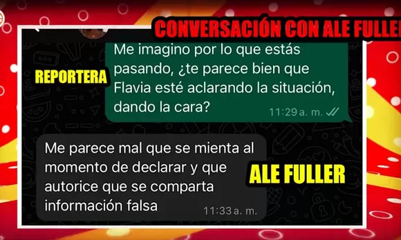 "(Claro, se manchó tu imagen, se habla hasta que hubo un triángulo amoroso... incluso también Flavia ayer mostró unos chats con Pablo Heredia, donde lo acusa de jugar con Mayra) Si yo mostrara los chats que tengo...", puntualizó Ale Fuller. ¿Acaso Ale se animará a mostrar los chats que comprometerían a su expareja Heredia?