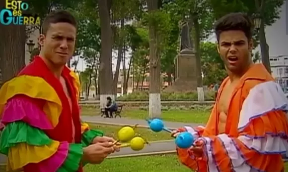 Ambos competidores de Esto es Guerra hicieron gala de sus mejores pasos y con maracas en mano desataron las risas y los aplausos del público que se reunió para verlos.