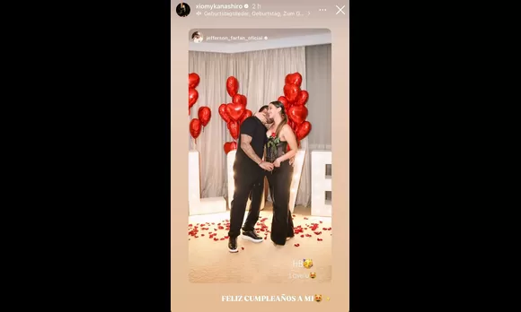 Jefferson Farfán se lució muy enamorado de Xiomy Kanashiro y no dudó en preparar un romántico detalle que compartió a través de sus redes sociales. El exfutbolista compartió una fotografía cuando sorprendió a la bailarina con varios globos en forma de corazón y de color rojo, letras gigantes que se lee la palabra "love" y una rosa roja mientras le daba un beso en el cuello.