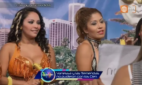 Vanessa Valencia, directora y cantante principal de' Las Tremendas de la Cumbia', llegó junto a su grupo para realizar un spot publicitario. Quien también participó fue la bailarina Irina Grandez, cómplice de la cámara escondida.