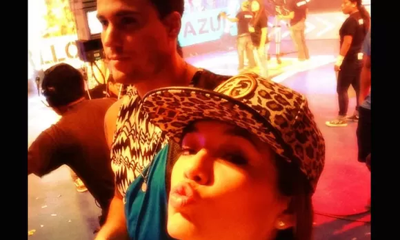 La Chinita Jazmín Pinedo publicó una foto en la que se ve en el set de Versus de Colegios. La Vengadora llegó para alentar a su novio Gino Assereto.