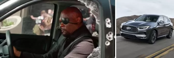 En la escena post créditos, Nick Fury conduce un Infiniti QX50. (Infinity, lo entienden?)