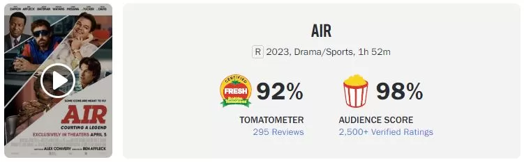 Pueda que en la cartelera 'AIR' haya pasado modestamente pero lo cierto es que la película protagonizada y dirigida por Ben Affleck sobre los inicios del astro del básquetbol, Michael Jordan, tuvo los mejores comentarios y reseñas.