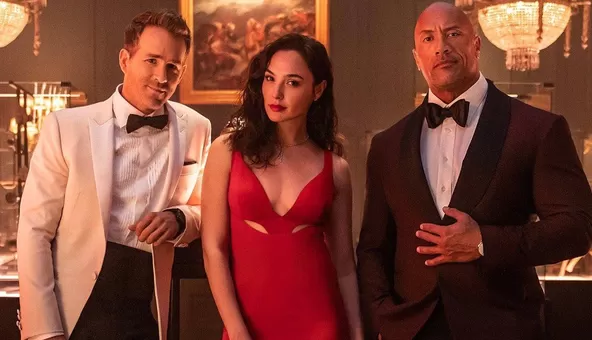 Sinopsis Oficial: Cuando la Interpol emite una notificación roja — la orden del más alto nivel para encontrar y capturar a los más buscados del mundo — John Hartley (Dwayne Johnson), el mejor perfilador del FBI, se pone en marcha. Esta persecución global lo lleva justo al centro de un audaz atraco en el que se ve obligado a asociarse con Nolan Booth (Ryan Reynolds), el mejor ladrón de arte del mundo, para atrapar a la ladrona de arte más buscada del mundo: “The Bishop” (Gal Gadot). La riesgosa aventura lleva a este trío en una aventura por todo el planeta, desde una pista de baile o una prisión aislada, hasta el corazón de la jungla... aunque lo peor para todos, será que siempre estarán juntos. A este elenco estelar se unen Ritu Arya y Chris Diamantopolous. Escrita y dirigida por Rawson Marshall Thurber (Central Intelligence, Skyscraper) y producida por Hiram Garcia, Dwayne Johnson y Dany Garcia de Seven Bucks Productions, y las casas productoras Flynn Picture Co. de Beau Flynn y Bad Version, Inc. de Rawson Marshall Thurber, Red Notice es una competencia alrededor del mundo, al puro estilo gato-y- ratón (¡y otro gato!).