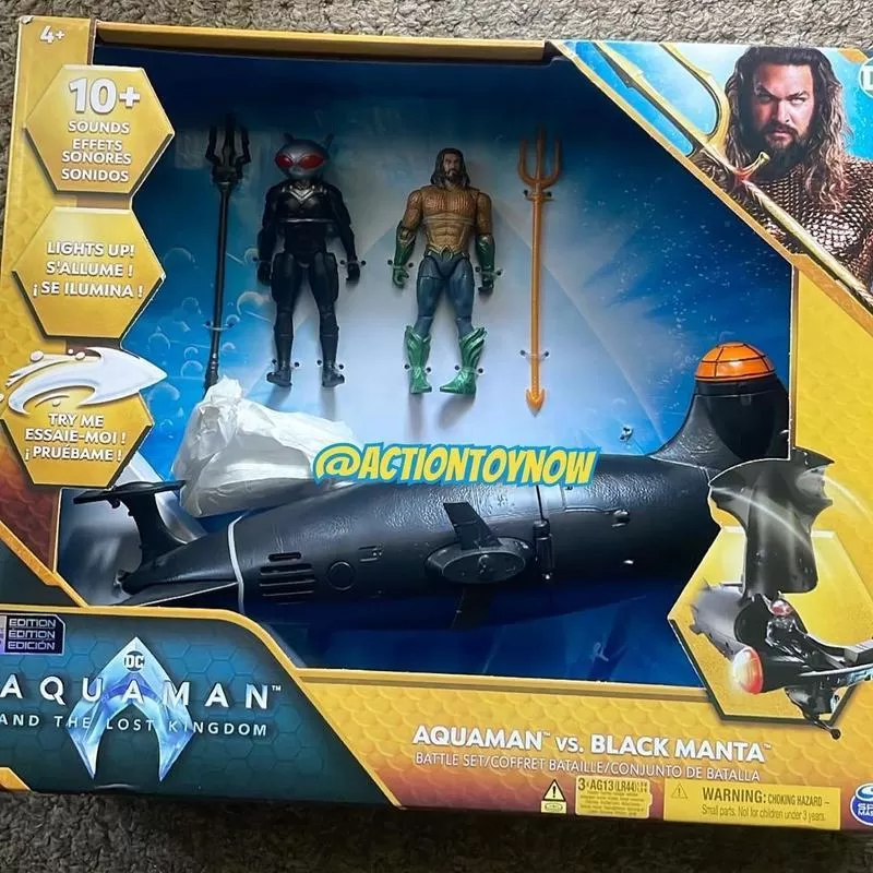¡Una filtración del merchandising! Echa un vistazo al primer juguete de Jason Momoa en su papel principal como Arthur Curry, también conocido como Aquaman. El set de batalla “Aquaman vs. Black Manta” presenta a Momoa luciendo épico con su tridente atlante en la esquina superior derecha del empaque del juguete.