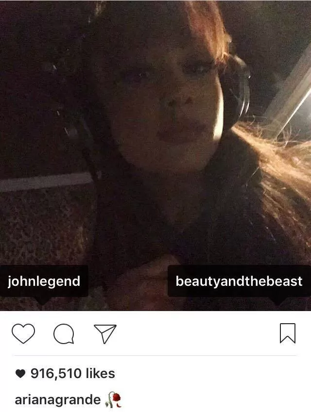 La noticia salió a la luz gracias a que Ariana compartió una foto de Instagram etiquetando a la cuenta oficial de la película y al cantautor de 'All Of Me', junto a un emoji de una rosa como la que se puede ver en la peli.