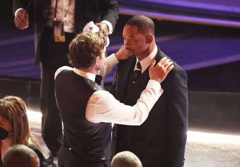 Otro de los actores que no dudó en acercarse para intentar calmarlo por lo sucedido fue Bradley Cooper, cogiéndole los hombros e intentando consolarlo tras lo que acababa de hacer.