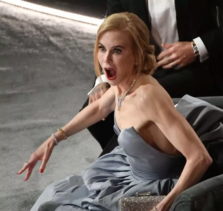 Las reacciones en la gala fueron de estupor, de asombro y, posteriormente, de rechazo o aceptación. Las que más llamaron la atención fue la de Nicole Kidman, con una cara que también será recordada y mencionada por bastante tiempo: