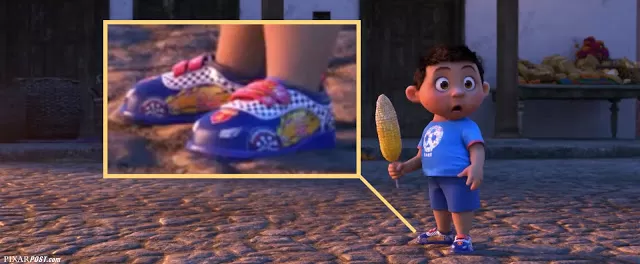 Al inicio de la película, se puede ver a Miguel mirando por una ventana y de pronto pasa por sus narices una camioneta repartidora. Pasa de una manera veloz pero los rápidos de vista pudieron ver el logo de Pizza Planet, en clara referencia a Toy Story.