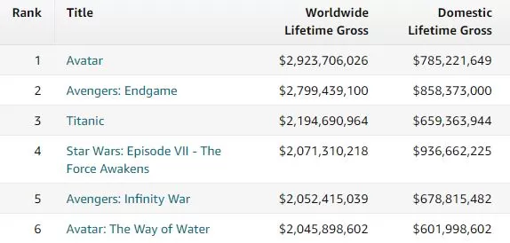 Con ello, James Cameron obtiene otra interesante marca pues es el único director en tener 3 películas en el TOP 5 a nivel mundial, superando así la marca que lo tenía empatado con los hermanos Russo.