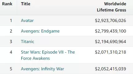 Y es que 'Avatar: El Camino del Agua' estaría muy muy cerca de alcanzar no solo a 'Avengers Infinity War' y sus $2052 millones sino también a 'Star Wars: El Despertar de la Fuerza' y sus $2071 millones.
