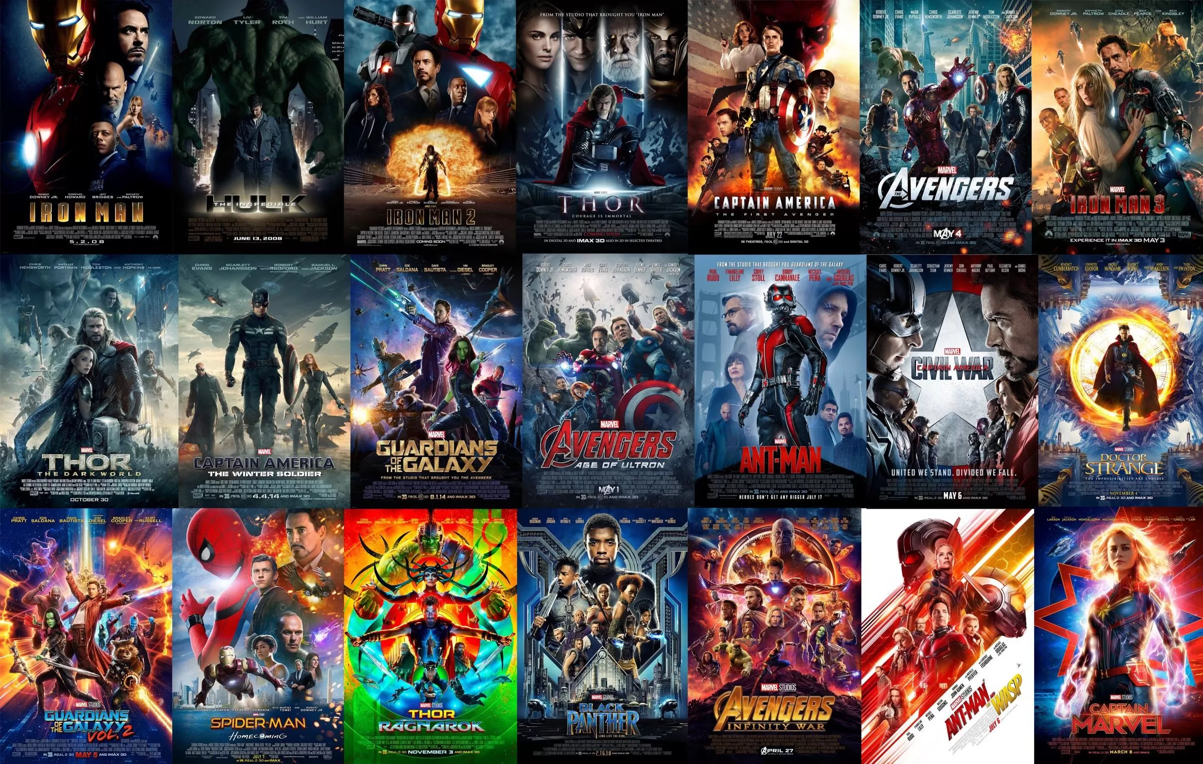El Universo Cinematográfico de Marvel, que con Avengers: Endgame alcanzará las 22 películas, se ha convertido en la franquicia más taquillera de la industria con más de 18.000 millones de dólares recaudados desde 2008 hasta ahora.