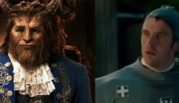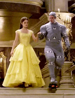 Incluso para Dan Stevens debe haber sido complicado tener que ponerse ese traje enorme y un par de zancos para que los encargados puedan trabajar el CGI de su personaje.