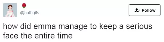 En Twitter, un espectador elogió a Emma Watson por bien que hizo en 'mantener una cara seria'.