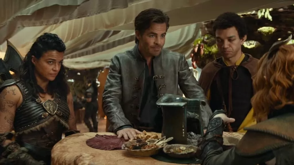 Al bardo se le unen Michelle Rodrigez, quien interpreta a una poderosa bárbara y Justice Smith, quien encarna a un hechicero. Más adelante, conocemos a los aliados que se unen al equipo de ladrones.