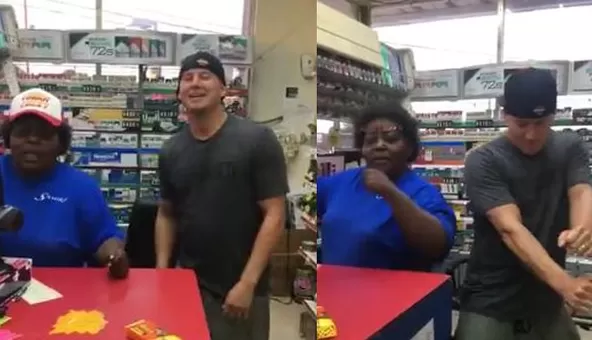 Pues bien, llegó hasta esta gasolinera donde una amable señora lo reconoció y además de "toquetearlo" un poco, Channing aprovechó en compartir algunos pasos de baile con ella. Entre los comentarios que se pueden leer en la red social destacan la tranquilidad de la mujer para comportarse y mantener la cordura teniendo a Channing contornéandose al lado.