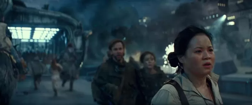 Hasta estas alturas no habíamos visto a Dominic Monaghan en ningún material promocional, pero en una fugaz escena le podemos ver tras Rose Tico mientras intentan escapar de una base asediada de la Resistencia.