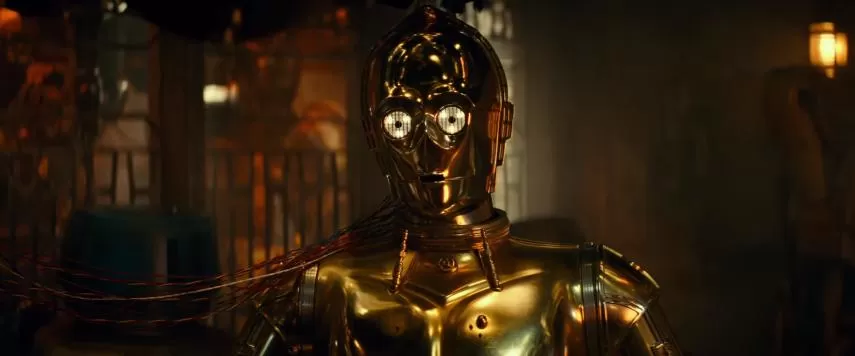 Desde ya podemos decir que esta escena será la más nostálgica y entrañable de toda la película, pues el personaje con voz de Anthony Daniels, se despide de la saga galáctica. No sabemos bien que pasará con C-3PO, pero su escena suena a “despedida” de sus amigos, incluyendo a R2-D2.