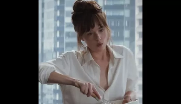 Aquí te dejamos uno más y donde ahora una enérgica Anastasia Steele prepara unos mañaneros panqueques, sin darse cuenta que Christian Grey la está mirando muy atentamente pues claro, se muere de 'hambre': Cincuenta Sombras de Grey se estrena este 12 de febrero.