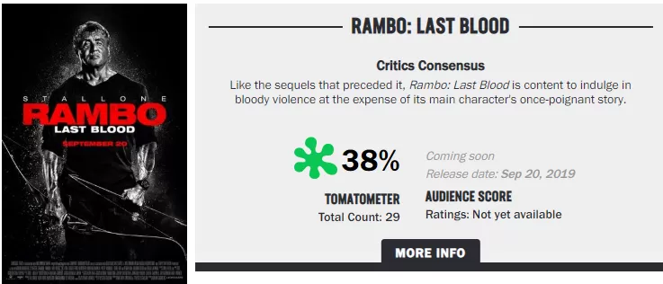 La violencia también ha sido criticada, así como el fracaso de la secuela de estar a la altura de cualquiera de las películas anteriores. Dada la popularidad de Rambo y el amor del público por las películas de acción, existe la posibilidad de que la última entrega de Stallone pueda generar una buena ganancia en la taquilla.