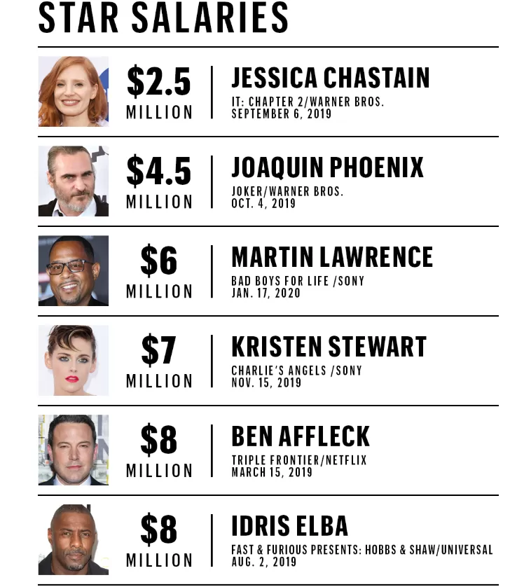 Smith y Martin Lawrence una vez cobraron $ 20 millones por película, pero ambos actores están reduciendo los precios para que "Bad Boys for Life" obtenga luz verde. Además, es posible que Tom Cruise haya ganado $ 20 millones en su apogeo a mediados de los 90, pero para repetir su papel icónico como Maverick, de "Top Gun: Maverick", está recibiendo solo $ 12 millones. Las grandes franquicias no pagan lo que una vez pagaron.