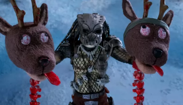 Este material stop motion salió para promocionar que el largometraje ya está disponible en formato digital y Blu-ray y es tan tonto como divertido, pues, aunque todo parezca tener un ambiente navideño al principio, las cosas se pueden tornar muy violentas cuando los Depredadores salgan al ataque.