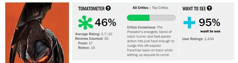 Por ahora, ‘El Depredador’ cuenta con 46% en el Tomatómetro de la página oficial rottentomatoes.com. La película de acción fue proyectada durante el Festival de Toronto y los asistentes ya han compartido sus críticas. Aquí te dejamos algunas: