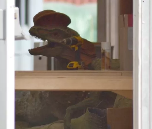 Aunque no existían Dilophosaurus vivos en Jurassic World, había uno en una pantalla holográfica en el Jurassic World Innovation Center. Esta pantalla holográfica resultó útil, aunque desde que fue utilizada por Gray Mitchell (Ty Simpkins) para distraer al Velociraptor llamado Delta, su hermano Zach (Nick Robinson), Claire Dearing (Bryce Dallas Howard) y Owen Grady (Chris Pratt) escaparon del edificio ilesos.