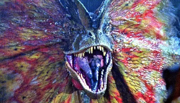 En cuanto a los Dilophosauros, ese dinosaurio en particular fue presentado en una escena icónica de la película original de Jurassic Park, donde esta criatura mató a Dennis Nedry (Wayne Knight) en su Jeep, mientras trataba de huir del parque con embriones de dinosaurios robados.