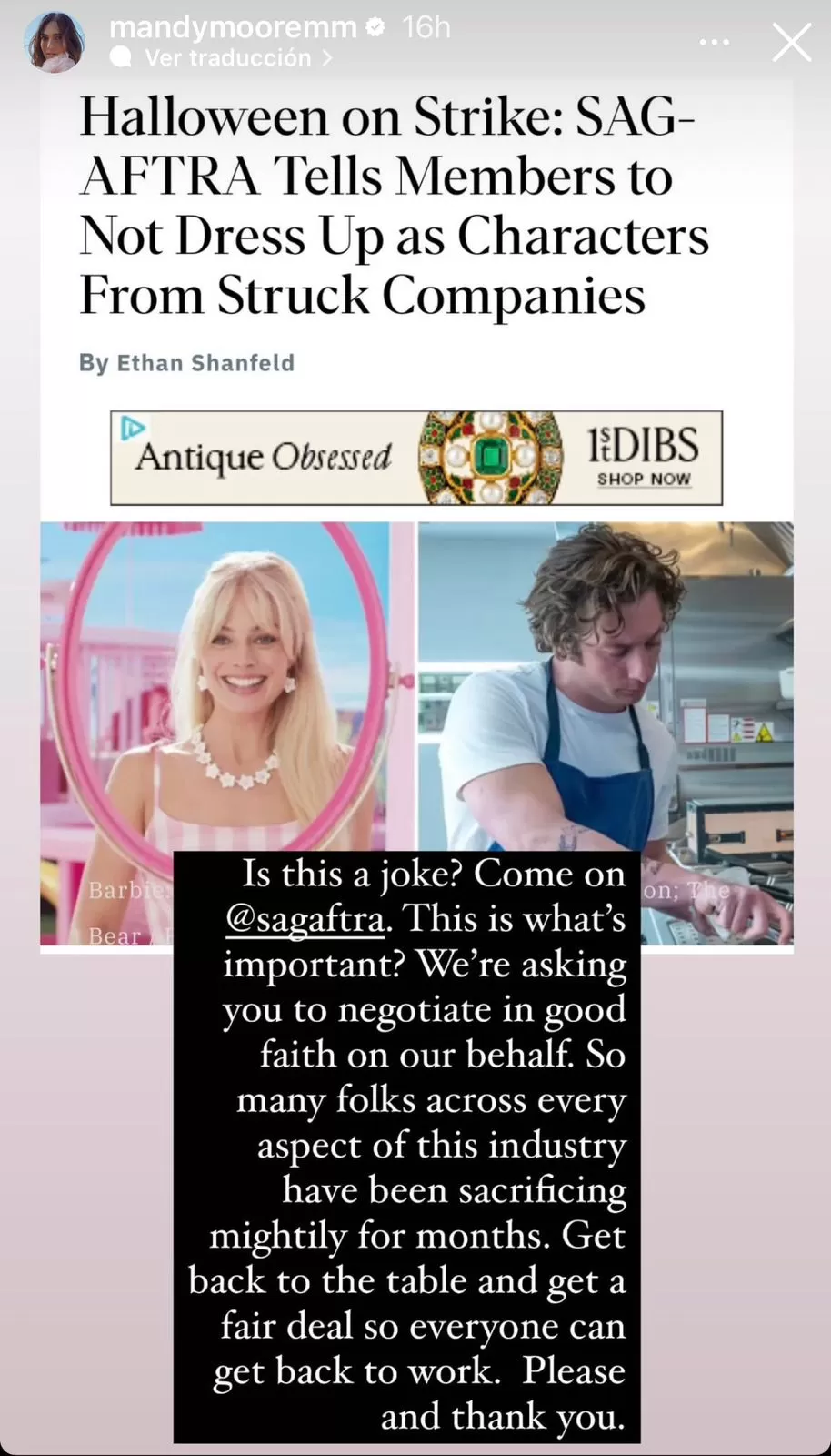 "¿Esto es una broma?. Vamos @sagaftra. ¿Esto es lo importante? Le pedimos que negocie de buena fe en nuestro nombre. Muchas personas en todos los aspectos de esta industria se han estado sacrificando enormemente durante meses. Vuelvan a la mesa y consigan un trato justo para que todos puedan volver a trabajar”.