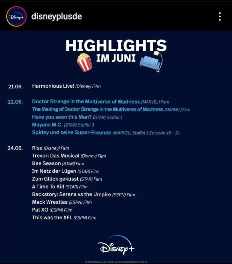 Si bien no hay una fecha anunciada de manera oficial, podríamos tener una pista y habría llegado desde la cuenta de Disney de Alemania donde se les habría "escapado" su publicación de junio con el lanzamiento de 'Doctor Strange en el Multiverso de la Locura' programado para el 22 del citado mes.