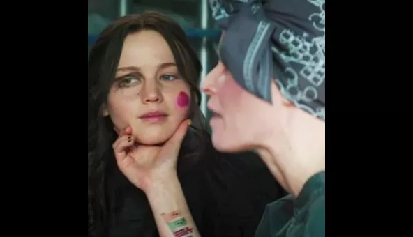 Ayer vimos la escena de Peeta con el Presidente Snow y hoy te dejamos dos más con Katniss Everdeen. En la primera, la vemos discutir con su mentor Haymitch, quien le prometió salvar a Peeta, mientras que la segunda se centra en Effie, tratando de salvar a Katniss y a su revolucionario rostro del horrendo maquillaje que le están haciendo (¿serán acaso las maquilladoras de Uma Thurman?).