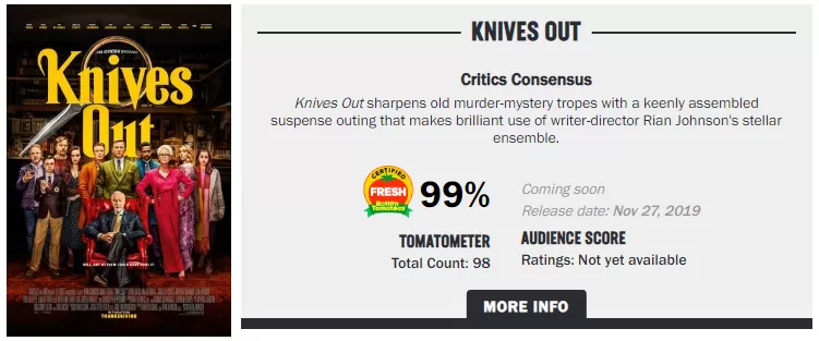 El trailer final de 'Entre Navajas y Secretos' ha salido el día de hoy y Lionsgate no tuvo mejor idea que recopilar los mejores comentarios de la crítica como para que no te queden dudas que es una excelente alternativa para ver en los cines este 12 de diciembre.