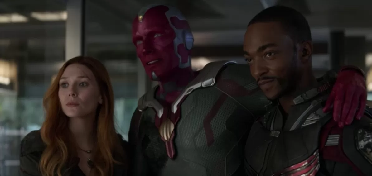 Los personajes que se quedan solos son Vision, Bruja Escarlata, y Falcon y estos tres héroes están muertos al final de Infinity War. Todos en la planta baja: Capitán América, Viuda Negra, Máquina de Guerra, Bruce Banner, sobreviven a la batalla con Thanos.