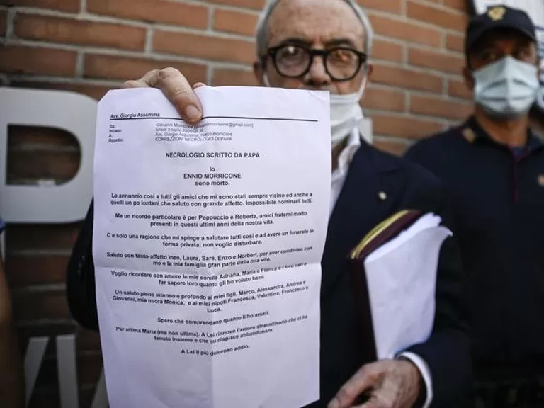 “Yo, Ennio Morricone, he muerto. Lo anuncio así a todos los amigos que siempre me fueron cercanos y también a esos un poco lejanos que despido con gran afecto” - se puede leer en la carta que el mismo compositor escribió, y la cual muestra su abogado.