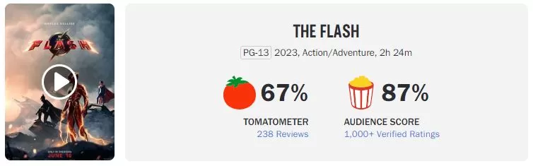 Pero bueno, los efectos claramente no son todo y los cinemeros, en su mayoría han salido bastante contentos con el resultado final de 'Flash' y para muestra la calificación que viene obteniendo en diversos portales, como Rotten Tomatoes.