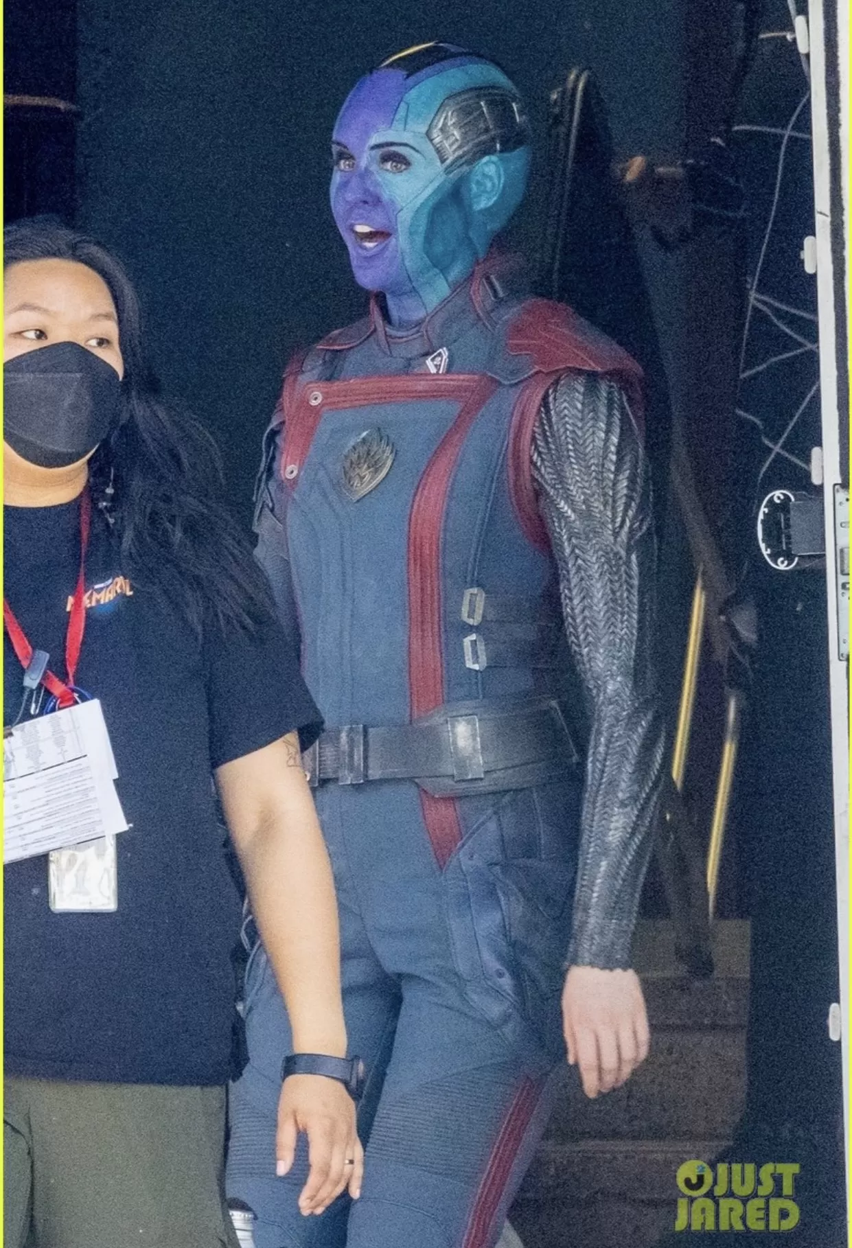 En ellas podemos ver a dos de nuestros queridos protagonistas, interpretados por Chris Pratt y Karen Gillan. Si prestaste atención, habrás notado que ambos lucen el mismo atuendo en tonos azules con adornos rojos, interesante si tomamos en cuenta que los Guardianes nunca antes habían tenido el mismo uniforme salvo por el de los Ravager en el acto final de la primera película.