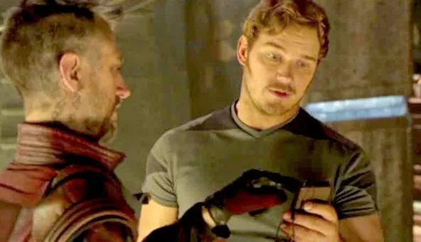 La escena viene cortesía de ET que nos muestra un poco más de Star-Lord descubriendo música que nunca tuvo la oportunidad de escuchar antes de salir de la Tierra en los primeros Guardianes de la Galaxia. La escena también cuenta con Kraglin (Sean Gunn) mostrándole a Peter Quill su nuevo dispositivo, que fue "hecho por la gente primitiva". En la escena, Kraglin explica hilarantemente parte de la música que ha disfrutado en el Zune.