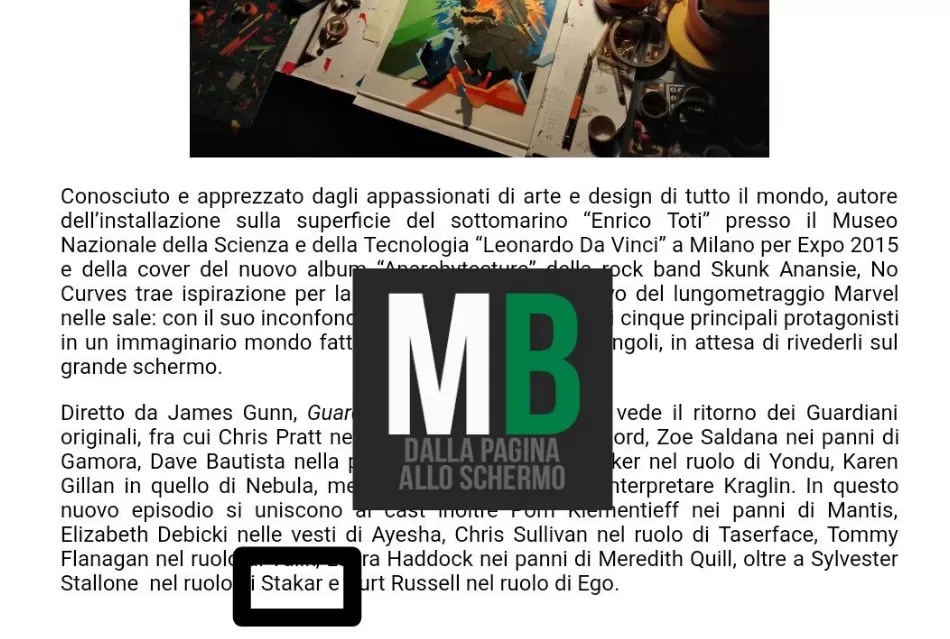 Los encargados de MovieBook.it, recibió material de prensa de la peli que revela el elenco completo, y ahí se revela el nombre del personaje de Stallone: Stakar ¿Pero quién es? Lo único que sabemos hasta el momento, es que su personaje será muy importante, y si no te suena mucho el nombre, es porque en los comics está bajo el nombre de Stakar Ogord, mejor conocido como Starhawk.