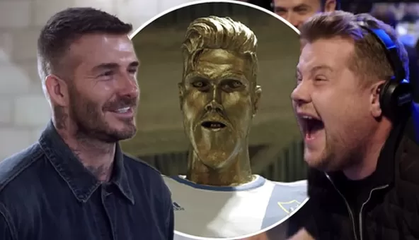 El presentador de televisión no dudó en hacerlo sufrir un poquito llevándolo a una reunión especial donde supuestamente vería en exclusiva y antes que nadie la escultura que L.A. Galaxy, club para el que jugó 3 años, hizo en su honor. El despistado David creía efectivamente que iba tener el primer vistazo de la estatua pero James Corden la había reemplazado astutamente por otra que realmente no lo dejaba muy bien parado.